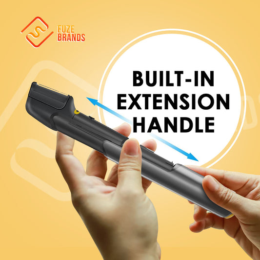 DapperScaper™ Men’s Hair & Body Trimmer – Self‑Cut Shaver with Extendable Handle, Titanium Blades, Wet/Dry IPX7, LED Light & 5 Guide Combs